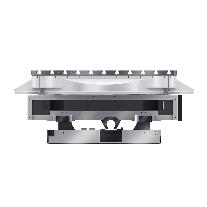 Станок оснащен особой компоновкой станин, которая характеризуется горизонтально передвижной стойкой. Также в комплектацию включена подвижная площадка для оператора, которая помогает работать со станком в разных позициях.